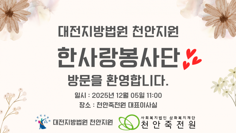 대전지방법원 천안지원 한사랑봉사단에서 방문해주셨습니다.