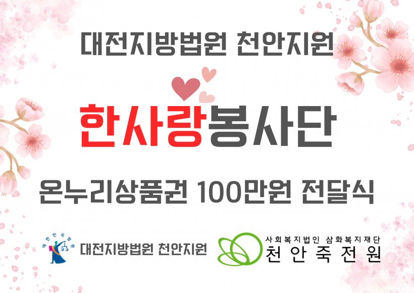 대전지방법원 천안지원 한사랑봉사단 방문 및 후원