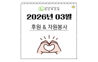 [2월]후원&자원봉사 페이지 정보 작성자 운영자 작성일26-03-13 11:13 조회2회 댓글0건 관련링크 목록 본문 2026년 2월 후원 및 자원봉사입니다.감사합니다 댓글목록 등록된 댓글이 없습니다. 목록